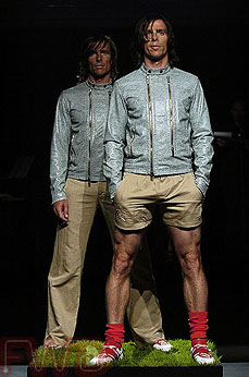 Порой то, что повсеместно считается полной противоположностью изяществу, вдруг облекается в совершенно невероятную форму, и, благодаря этому, предстает в иной ипостаси. Шокируя и, одновременно, восхищая публику, прошел показ новой коллекции немецкого дизайнера Дирка Биккембергса (Dirk Bikkembergs). Его неожиданный взгляд на современную мужскую моду поверг в изумление изощренный миланский бомонд. Почти невероятное сочетание спортивного стиля с изысканными деталями от кутюр вызвало неоднозначную реакцию. С одной стороны, эпатажное использование традиционно спортивных силуэтов в одежде для светских раутов говорит о стремлении мастера к преодолению стереотипов, а с другой, изысканность, с которой дизайнер сумел органично вплести тонкость и изящество от кутюр в демократичные формы, говорит о желании изменить взгляд на привычные и, порой, обыденные вещи.