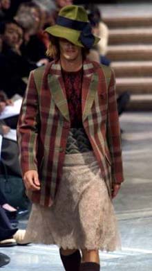 Английский дизайнер Вивьенн Вествуд (Vivienne Westwood), известная своей эксцентричностью, провела показ в Миланском государственном университете. Ее новая коллекция была пропитана атмосферой Оксфорда 20-х годов: по подиуму шествовали денди в широких бриджах, твидовых куртках и даже юбках из шотландки.